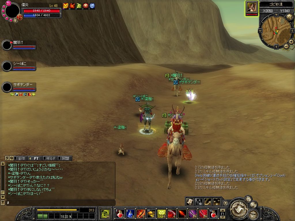 サボテンダーさんの交戦を見守っている途中、盗賊さんのタゲが儒炎に一度きて、即死。俺よわ~