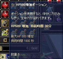 HP500増加ポーションは重複不可とないですね。だけど試してみるにはもったいなすぎる!結局使いどころないかな~。