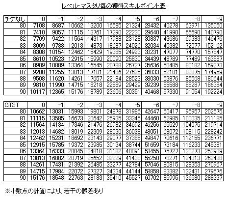 ここで、スキルポイントについて まとめたものをUP